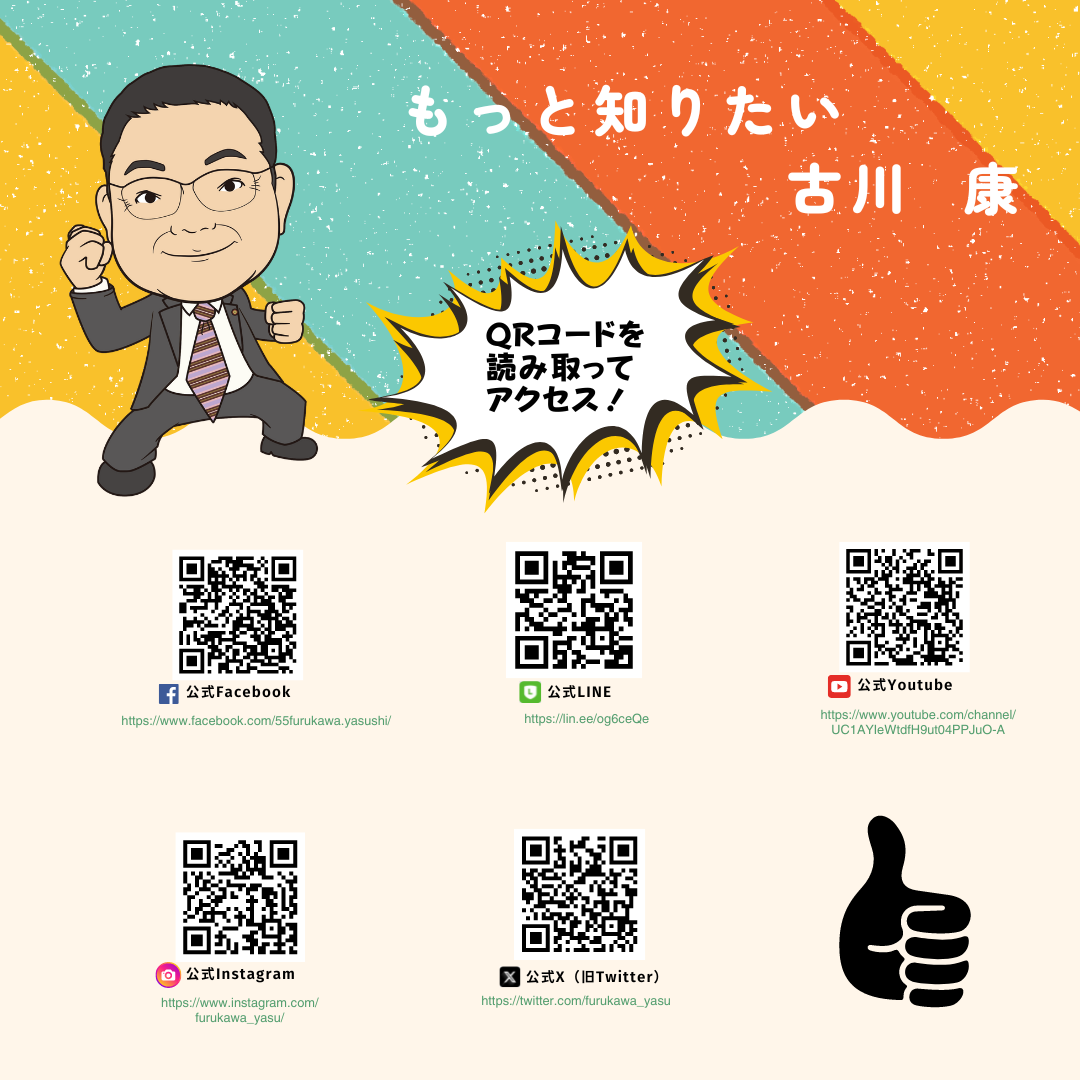 古川康後援会が運営するサイト(公式ホームページ、facebook、Instagram、Twitter)は、古川 康および古川康後援会が運営しています。